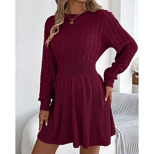 Per donna Mini Abito Abiti in tessuto di lino e policotone Abito in maglia Moderno Quotidiano Natale Uscire Vestibilità regolare Semplice Manica Lunga Girocollo Nero Vino Grigio Autunno Inverno