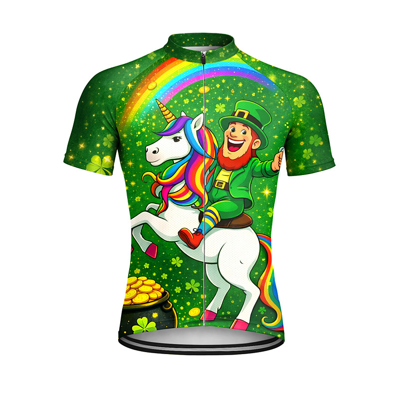 Men St Patrick Jersey Cycling Jersey Downhill Jersey Rainbow Four Leaf Clover Oktoberfest Beer Short Sleeve Bike T Shirt Top with 3 Rear Pockets UV Resistant Fast Dry With Pockets Front Zipper Sports