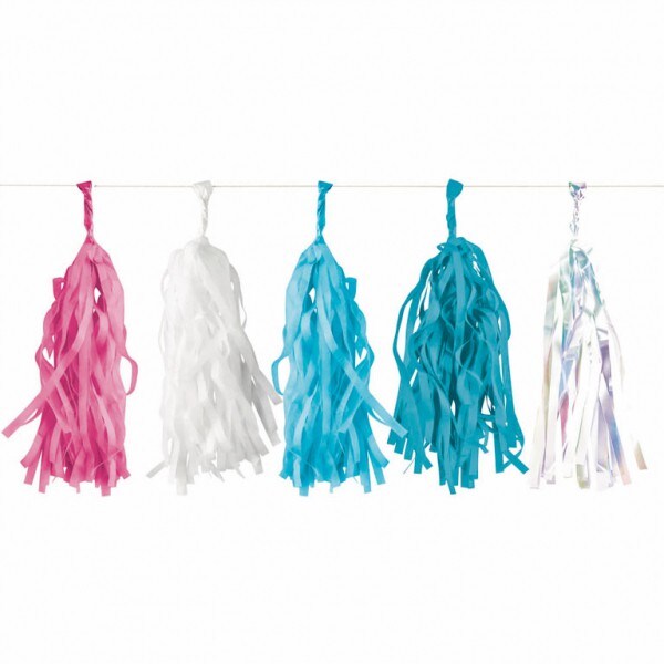 Tassel Girlande pink, türkis, weiss, silber