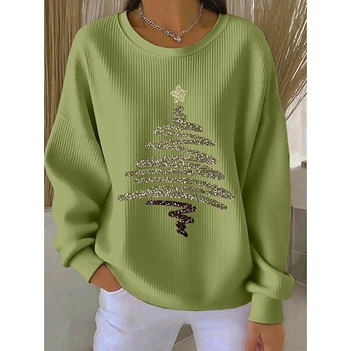 Maglione pullover per donne a Natale grafica casual maniche lunghe collo a giro top regolari abbigliamento quotidiano casual nero bianco verde chiaro rosso autunno inverno