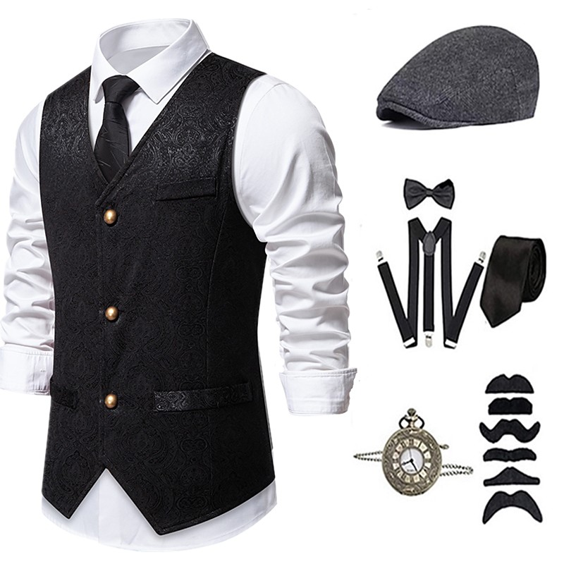 1920s Vintage Inspired The Great Gatsby Party Costume Masquerade Accessories Set Sleeveless Printing Collarless Fancy Dress Men's Halloween Party Evening Casual Daily Cravat Vest Hat All Seasons