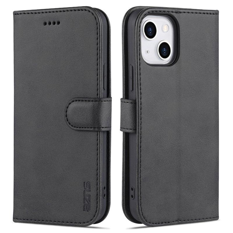 AZNS iPhone 15 Plånboksfodral Anti-Scratch Konstläder - Svart