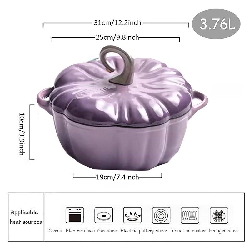 Pumpkin Stockpot, Non-Stick Enameled Pumpkin Dutch Oven with Lid, Dutch Oven Baking Dish with Lid, Pumpkin Casserole with Fall and Thanksgiving Decoration, Perfect for Cooking Evenly and Heating