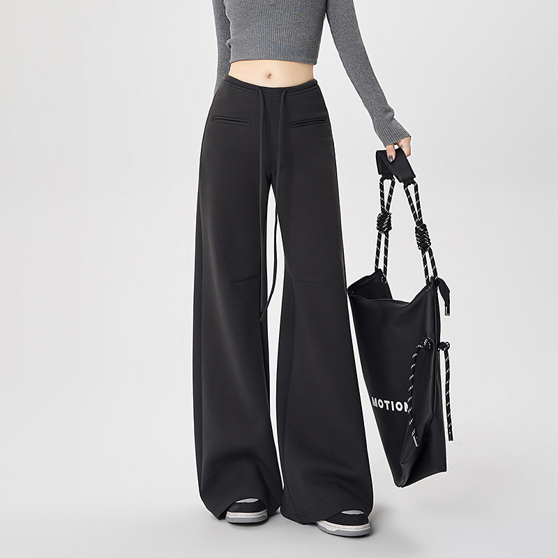 Women's Wide Leg Slacks Streetwear Casual Full Length Natural Plain Pocket Elastic Drawstring Design Comfy Street Holiday claret Black Army Green Light Brown Fall Regular Fit
