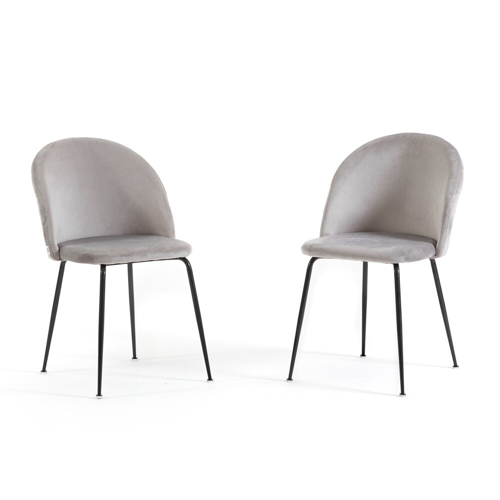 RATTATAN Set aus 2 Innenstühlen aus Samt, gepolstert, mit Metallbeinen, elegantes Design für Esszimmer, Bar und Restaurant – Sara – Hellgrau/Dunkelgrau