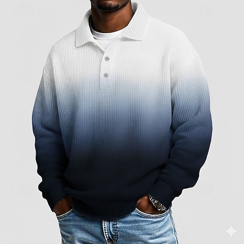 Per uomo Rampa gradiente Magliette Polo a Nido d'Ape Manica Lunga Magliette polo Bavero Abbigliamento Sportivo Casual Scuola Athleisure Abbigliamento quotidiano Stampa 3D Primavera Autunno Inverno