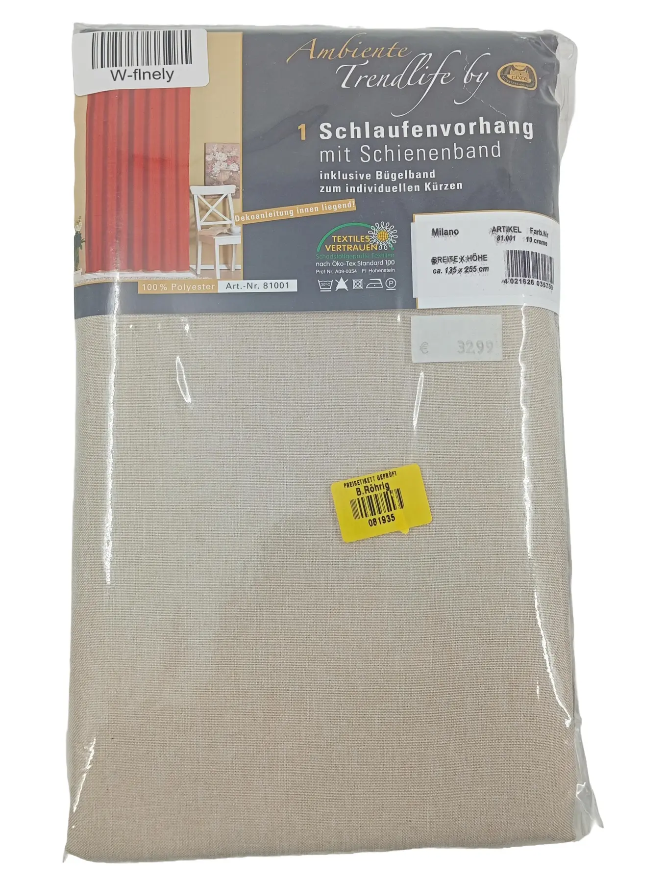 GÖZZE Vorhang Milano 135x255 cm Creme Schlaufen