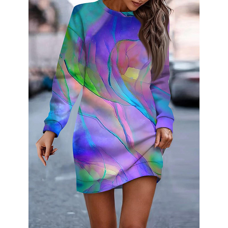 Women's Sweatshirt Dress Mini Dress Shift Dress Casual Holiday Weekend Regular Fit Graphic Color Block Long Sleeve Crew Neck Pink Royal Blue Blue Purple Fall Winter