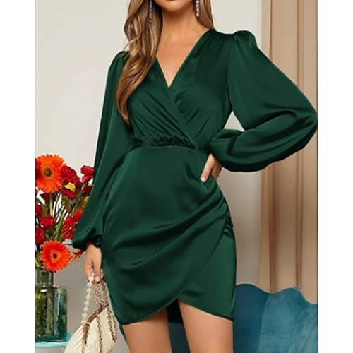 Per donna Mini Abito Vestito da Festa Abito da Cocktail Abito in Raso Abito a Portafoglio Moda Moderno Feste Festa serale Cocktail party Vestibilità regolare Semplice Manica Lunga Scollo a V Nero