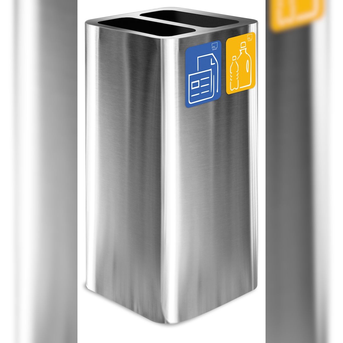 Stil Casa PURE Abfallbehälter, Edelstahl, 38x38xh. 80 cm, Deckel mit zwei Fächern, Kit mit magnetischen Piktogrammen, 100 Liter, satiniert.