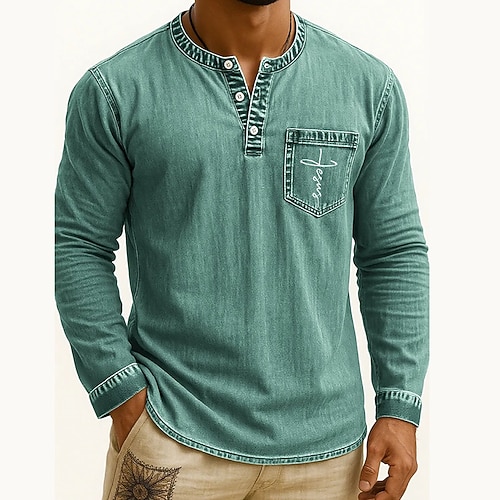 Herren Henley Hemd T-Shirt Langarmshirt Langarm Henley Herbst Winter Retro Mode Designer Nostalgisch Mode Jahrgang Urlaub Straße Ausgehen Marineblau Schwarz Hellgrün Top T-Shirt für Herren