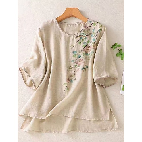 Per donna Maglietta Floreale Moda Moderno Casual Manica Corta Girocollo Top Regolari Quotidiano Weekend Stampato Bianco Viola Cachi Estate Primavera