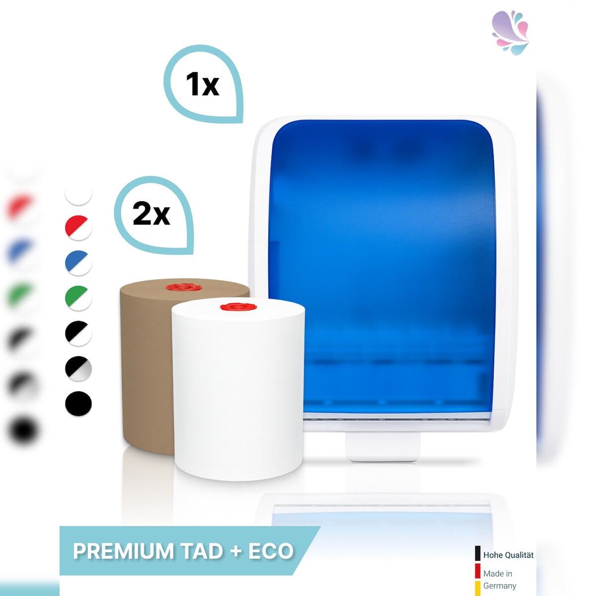 Blanc HYGIENIC Handtuchrollenspender Autocut, Blanc Cosmos + 1 Rolle PREMIUM TAD + 1 Rolle ECO Natural - PRODUKTSET