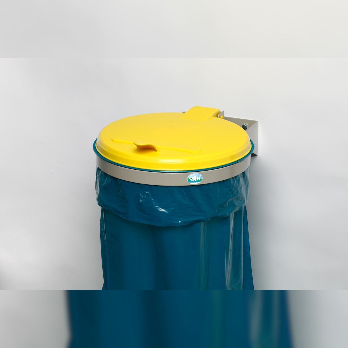 PROREGAL Robuster Abfallsammler für Wertstoffsortierung 1-Fach | Wandhalterung | 120 Liter, BxT 50x51cm | Stahl | Grau-Gelb | Mülleimer Abfalleimer