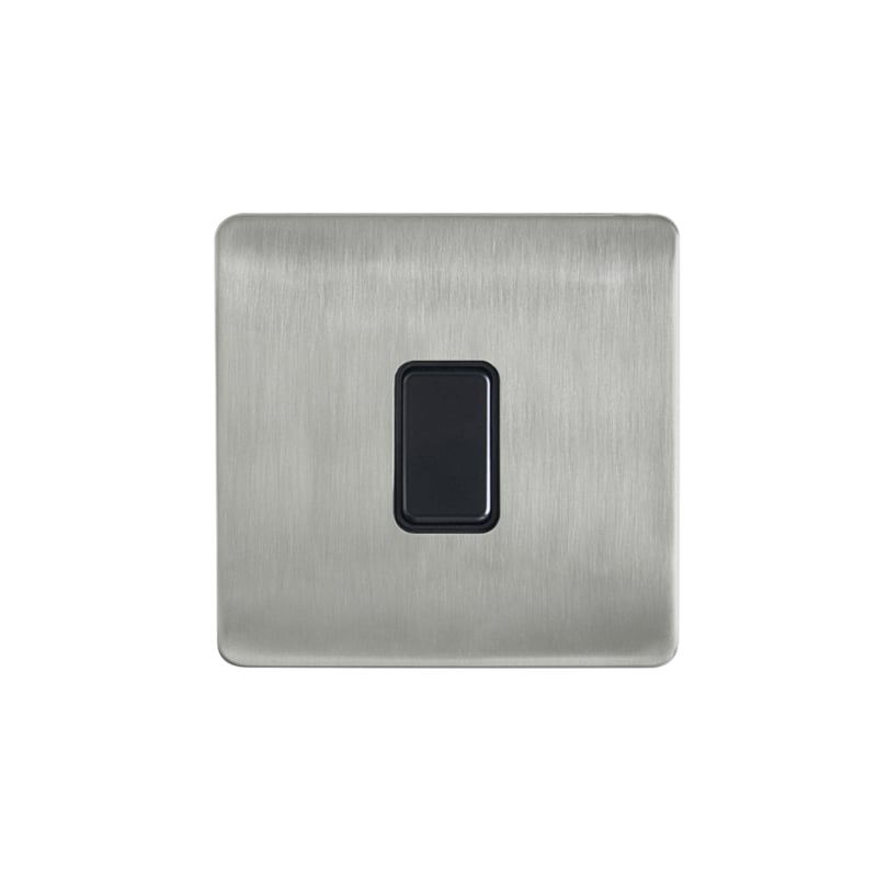 Click Deco 20A 1 Gang Double Pole 'Ingot' Switch Satin Chrome Insert Grey