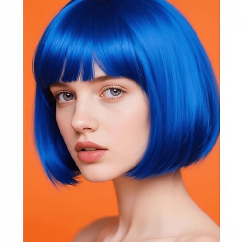 Parrucca di Carnevale Biondo Nero Blu Liscio Ciocca Corto Parrucca sintetica da festival Martedì grasso Parata Capelli per costumi da cosplay per Da donna