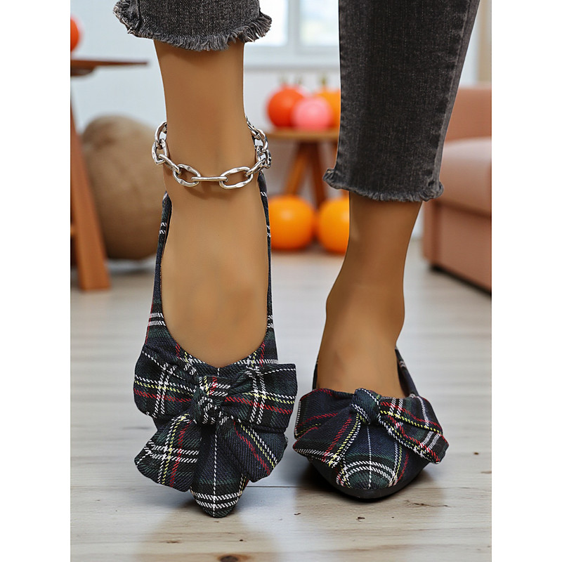 Women's Red Plaid Flats with Large Bow Accent, Vintage Casual Ballet Shoes for Christmas, Parties Daily Outfits