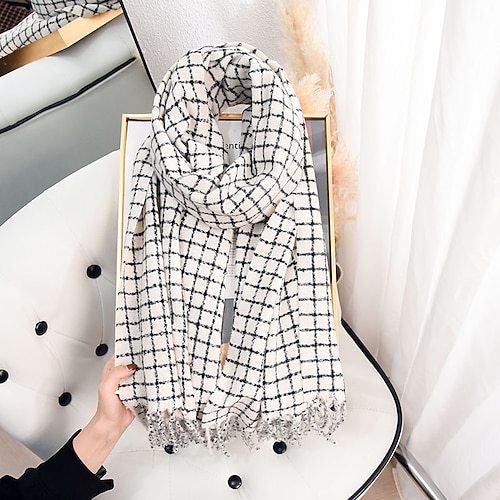Per donna Sciarpa rettangolare Ad anello All'aperto Streetwear Quotidiano Grigio Bianco Rosa Sciarpa Plaid Blocco di colori