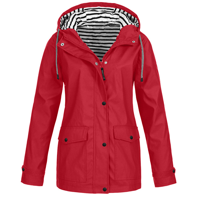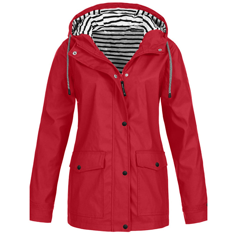 Women's Trench Coat Waterproof Rain Jackets Rain Coats With Hood Waterproof Windproof Zipper Pocket Fashion Outdoor Plain Going out Weekend Zipper Regular Hooded Regular Fit Long Sleeve Outerwear