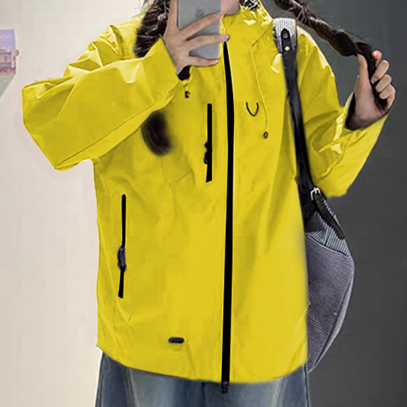Women's Trench Coat Waterproof Rain Jackets Rain Coats Waterproof Windproof Zipper Pocket Fashion Outdoor Plain Going out Weekend Zipper Regular Hooded Regular Fit Long Sleeve Outerwear Black Yellow