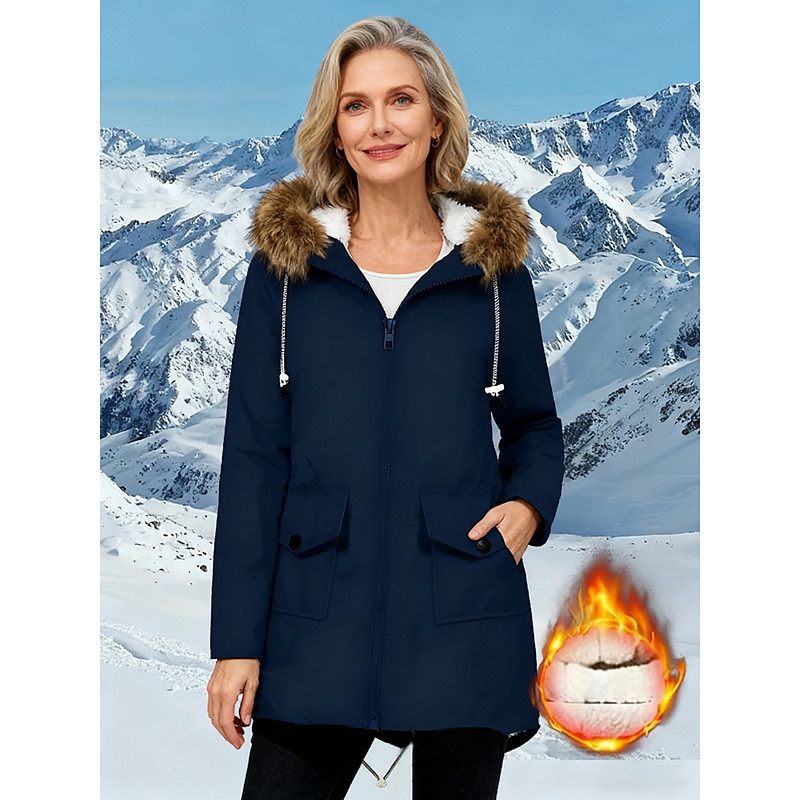 Women's Casual Jacket Hoodie Jacket Waterproof Warm Pocket Buttons Fleece Lined Casual Plain Vacation Street Casual Daily Wear Single Breasted Regular Turndown Regular Fit Long Sleeve Outerwear White