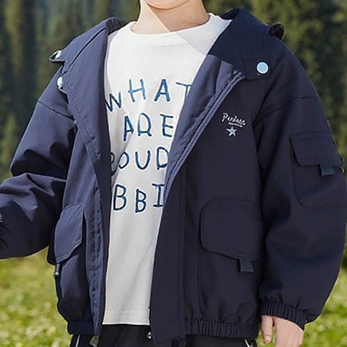 Kinder Jungen Kapuzenjacke Oberbekleidung Einfarbig Buchstabe Langarm Mantel Outdoor Baumwolle Cool Täglich Schwarz Blau Orange Herbst Winter 7-13 Jahre