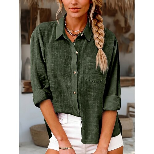 Per donna Camicia Camicie di cotone e lino Abbottonare Blusa Semplice Essenziale Moderno Manica Lunga Colletto a Camicia Top Regolari Ferie Uscire Bottoni Tasca Nero Bianco Rosa Verde militare Blu