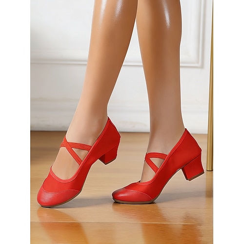 Per donna Scarpe per danza moderna Scarpe da ballo Da allenamento Balli da sala Valzer Scarpe comfort più morbido Tacchi Fibbia Tacco spesso Punta chiusa Fibbia Per adulto Argento Nero Rosso scuro
