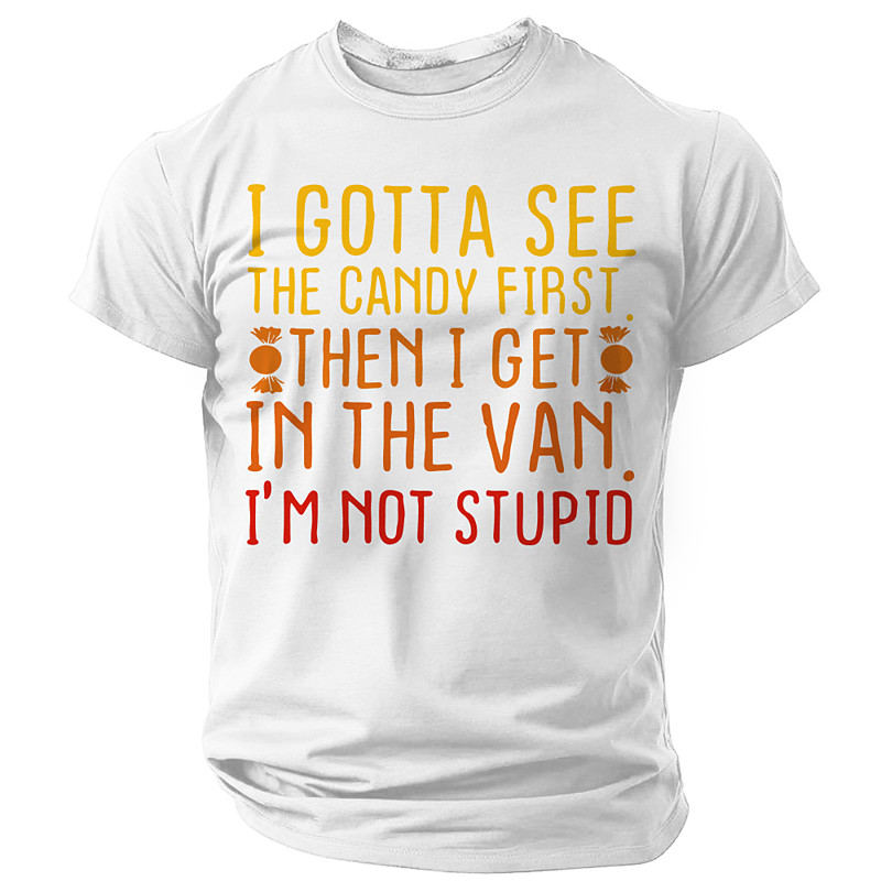 Men's Graphic T-Shirt: Funny 'I Gotta See The Candy First, Then I Get In The Van, I'm Not Stupid' Sarcastic Short Sleeve