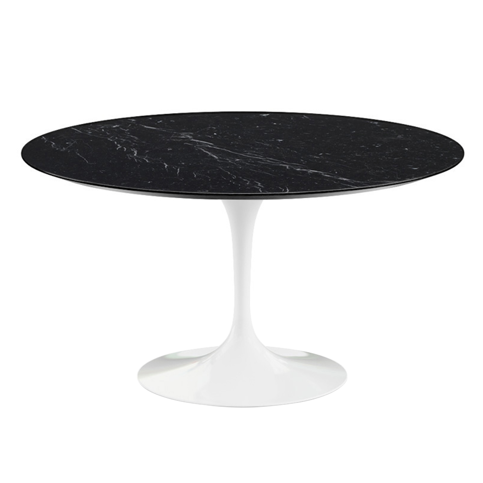 Knoll - Saarinen Round Table - Matbord, Ø 137 cm, Vitt underrede, skiva i glansig svart Marquina marmor - Matbord - Eero Saarinen