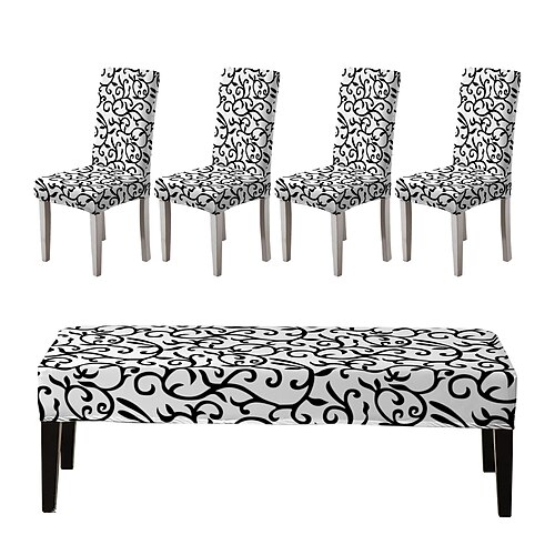 Set di fodere per sedie da pranzo e fodere per panche stampate, adatte per sedie da pranzo, include 5 pezzi, 4 fodere per sedie e 1 fodere per panca.