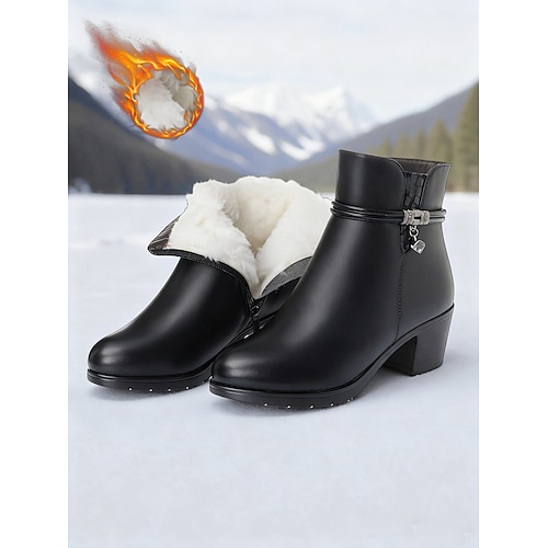 stivaletti marroni da donna con fodera in lana – caldi stivali invernali con tacco in similpelle per il freddo, l'ufficio e gli outfit casual