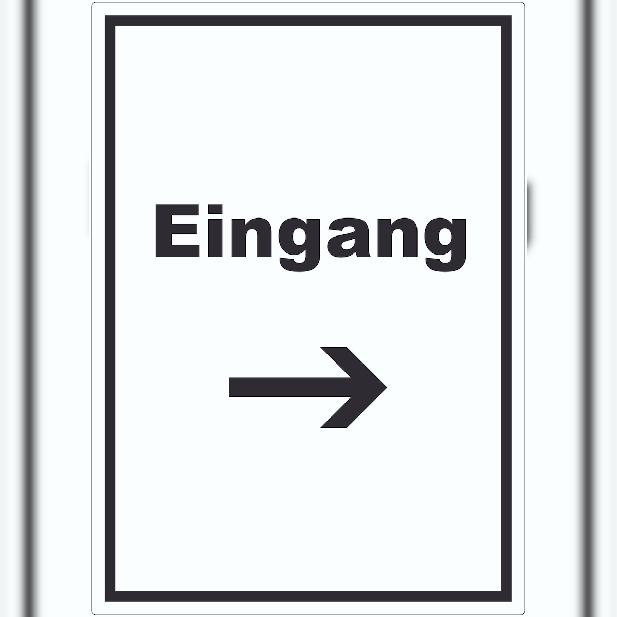 HB-Druck Eingang Aufkleber mit Text und Richtungspfeil rechts Zugang Eintritt hochkant A6 (105x148mm)
