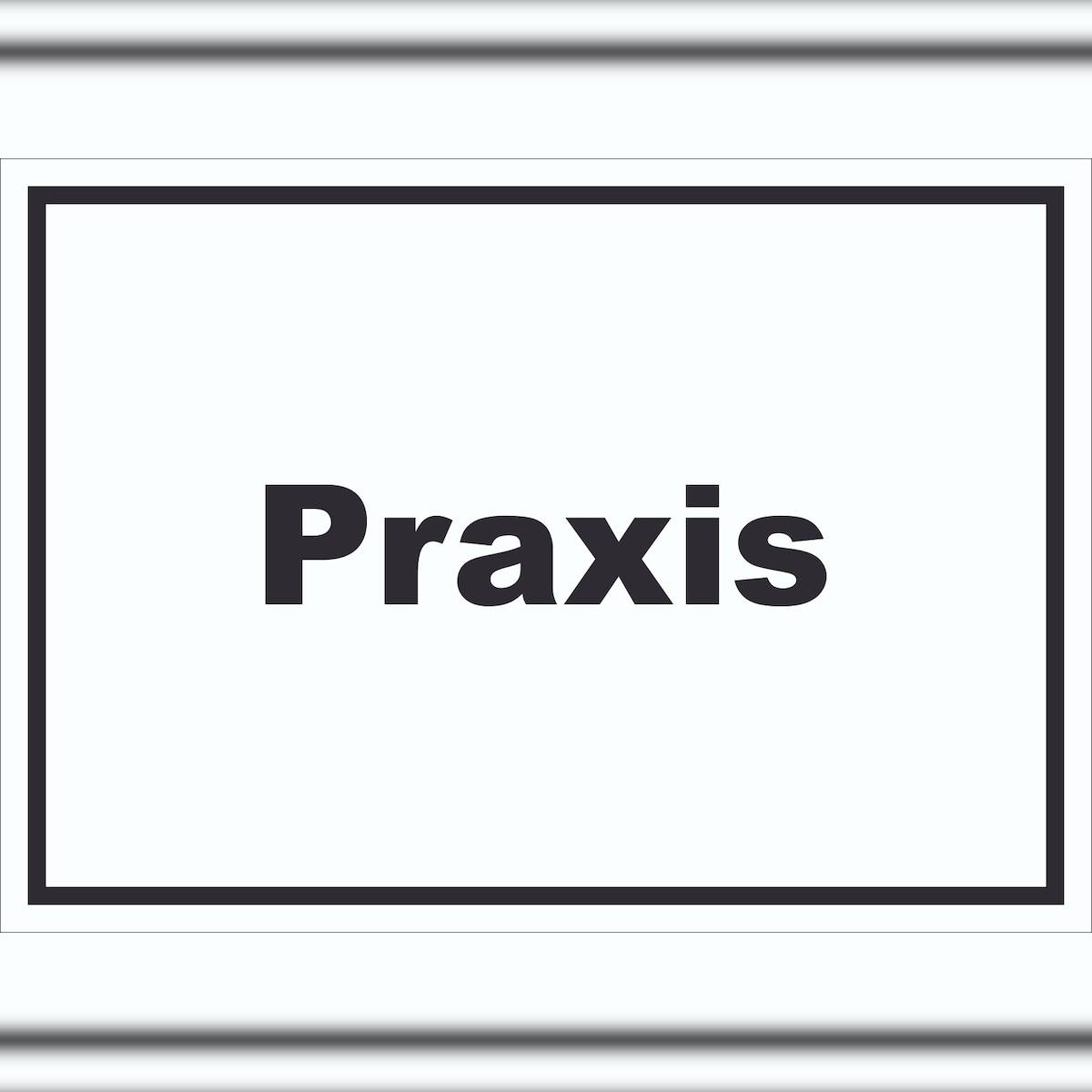 HB-Druck Praxis Schild mit Text und Richtungspfeil rechts Arzt Gesundheit hochkant A5 Rückseite selbstklebend
