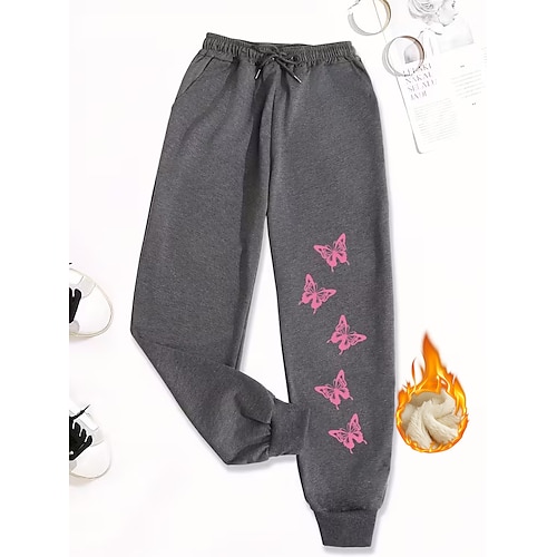 Per donna Pantaloni da tuta Joggers Vacanza Vintage Stile Etnico Lunghezza intera Vita Alta Farfalla Coulisse Tasca Pile Calore Termico Antivento Comodo Elasticizzato Formale Vacanza Streetwear