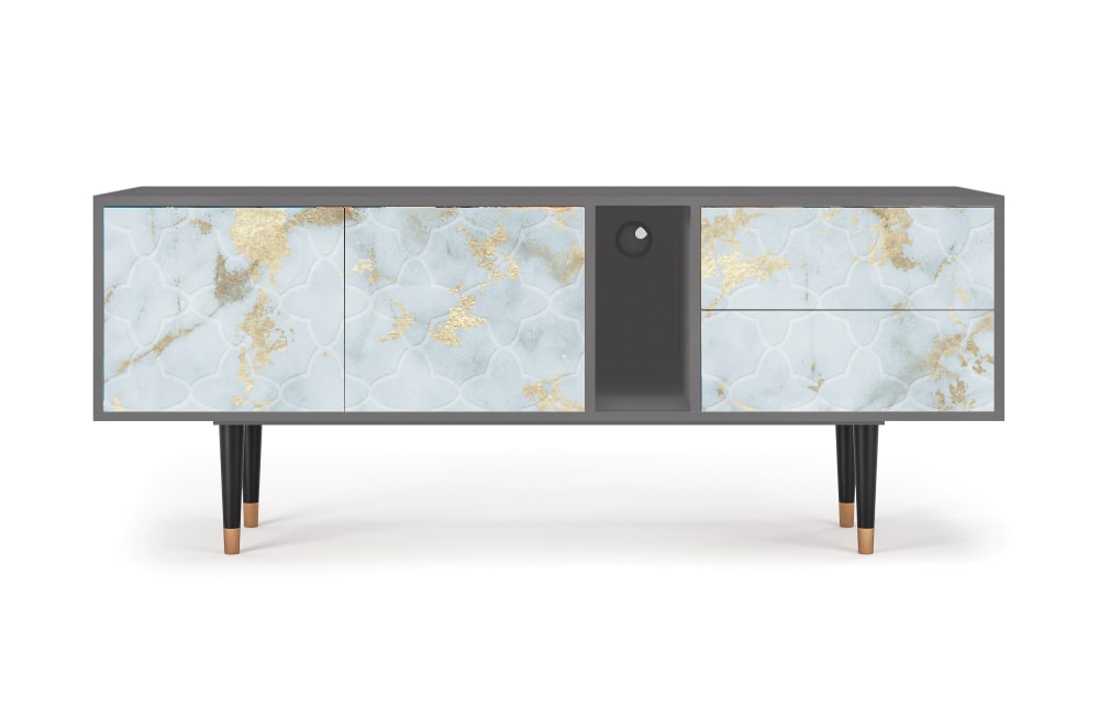 Mobile TV blu e giallo 2 cassetti e 2 ante L 170 cm
