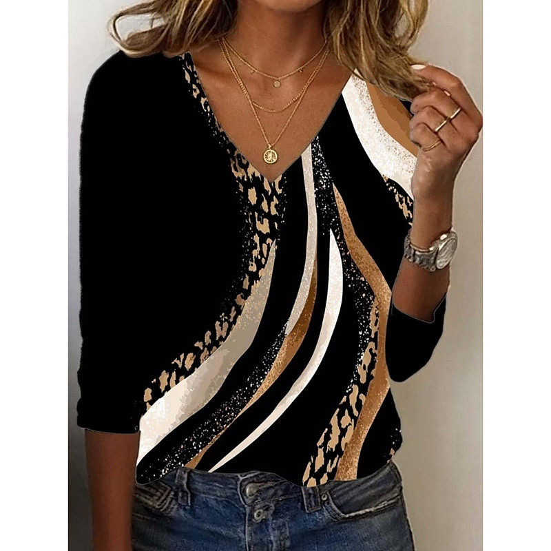 Women's Tunic T Shirt Leopard Color Block Letter Vintage Stylish Casual Long Sleeve V Neck Regular Tops Daily Sports Weekend Print Blue Pink Brown Green Fall