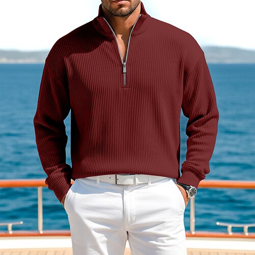 Per uomo Camicia di Velluto a Coste Polo Casuale All'aperto Zip a un quarto Manica Lunga Moda Moderno Tinta unica Semplice Caldo Primavera Primavera Autunno Vestibilità regolare Nero Vino Blu