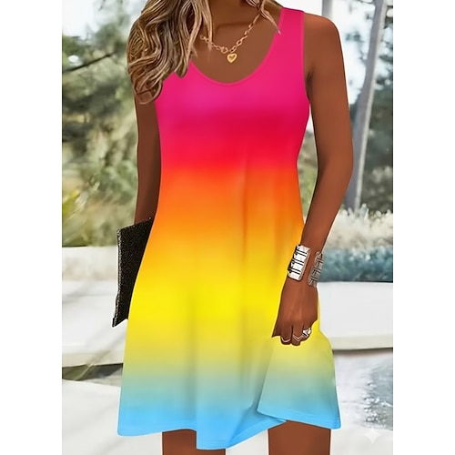 Per donna Abito al ginocchio Vestito Casual Vestito Estivo Abito a trapezio Abito a spalle scoperte Vacanza Casual Vestibilità regolare Grafico Astratto Marmo Senza Maniche Collo a U Scollo Tondo Rosa