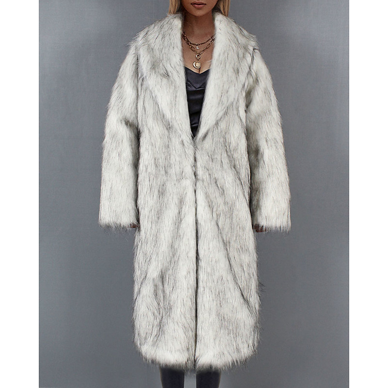Women's Coat Faux Fur Coat Warm Comfortable Furs Leathers Elegant Casual Plain Vacation Street Casual Daily Wear Long Turndown Regular Fit Long Sleeve Outerwear Black White Light Grey Fall Winter