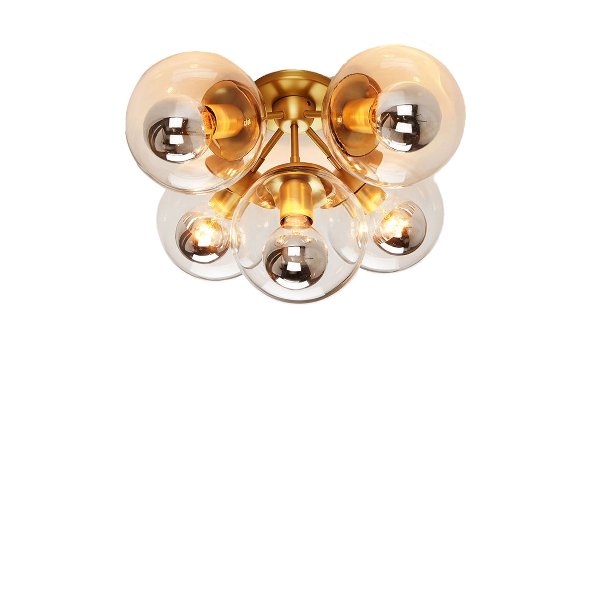 Roll & Hill - Modo Ceiling Mount 5 Globes Klarglas, Mässing - Plafonder - Jason Miller - Transparent,Guld