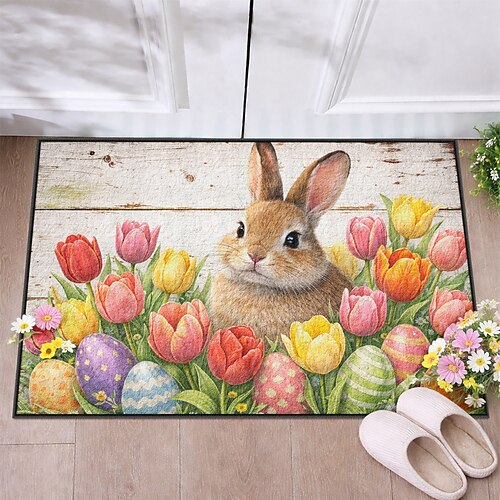 zerbino pasquale con coppia di coniglietti e fiocchi rosa circondati da vivaci tulipani e uova decorative, perfetto come decorazione di benvenuto primaverile per le feste