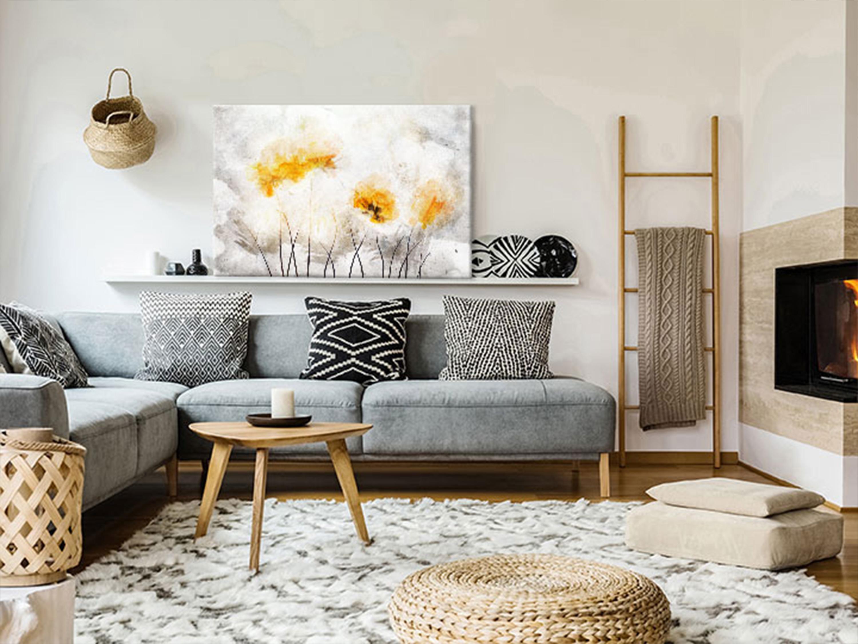 Skærmvæg - Golden Field of Poppies - 135 x 172 cm - Dobbeltsiddet