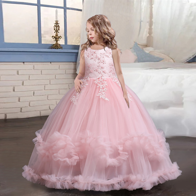 Kids Girls' Flower Girl Dress Dress Solid Colored Sleeveless Performance Wedding Party Lace Ruched Mesh Cute Princess Polyester Maxi A Line Dress Tulle Dress Flower Girl's Dress Spring Fall 4-13 Years