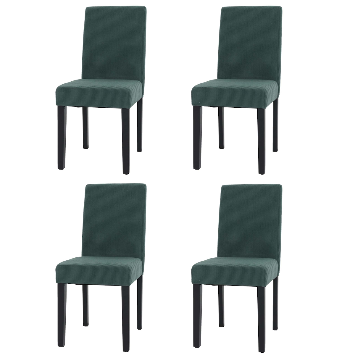 Mendler 4er-Set Esszimmerstuhl Littau, Stuhl Küchenstuhl Hochlehner, Stoff/Textil Cord Holz ~ grün, dunkle Beine