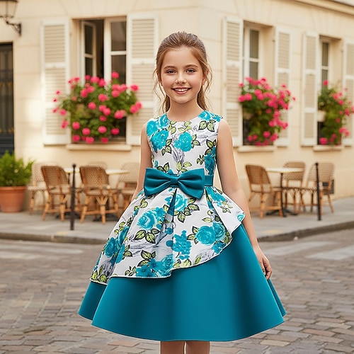 Abito da damigella d'onore bambina Ragazze Abito formale Abiti da sposa Feste Matrimonio Formale Adorabile Principessa Dolce Patchwork Floreale Senza Maniche Girocollo Blu Champagne Dai 4 anni in su