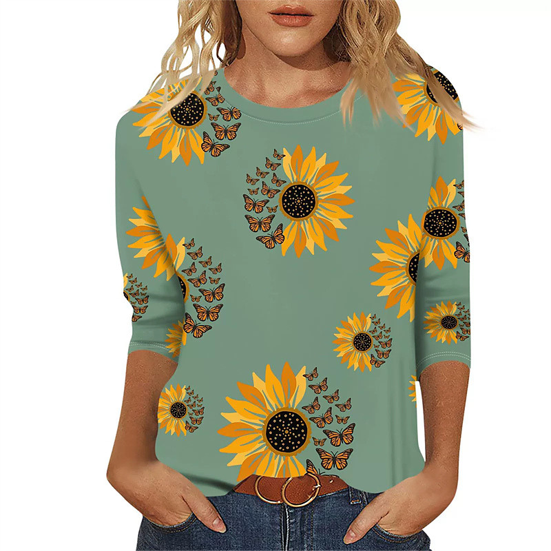 Women's T shirt Long Sleeve Crew Neck Long Sleeve Tunic Streetwear Casual Print Regular Tops Round Neck Daily Weekend Blue Purple Green Khaki Spring Fall Prefall
