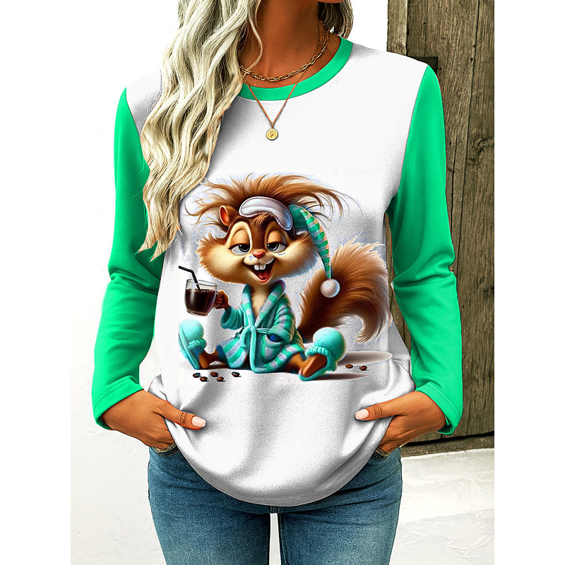Women's T Shirt Graphic Cartoon Vintage Stylish Classic Long Sleeve Crew Neck Regular Tops Daily Print Yellow Pink Blue Green Spring Fall Winter