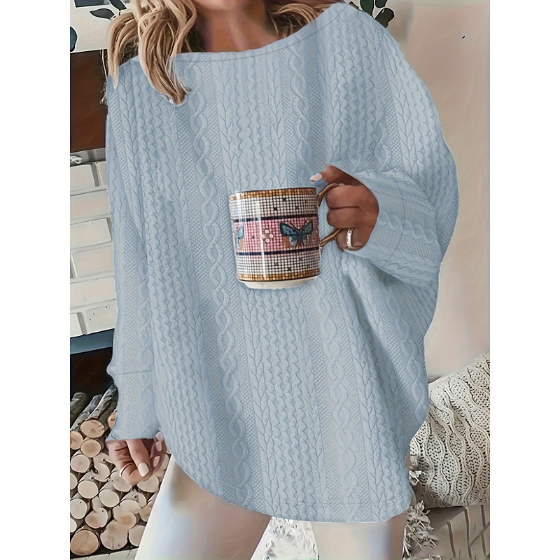 Women's Sweater Pullover Streetwear Casual Solid Color Cable Crew Neck Knitted Long Sleeve Regular Tops Knit Daily Holiday Going out Wine Red White Fall Winter