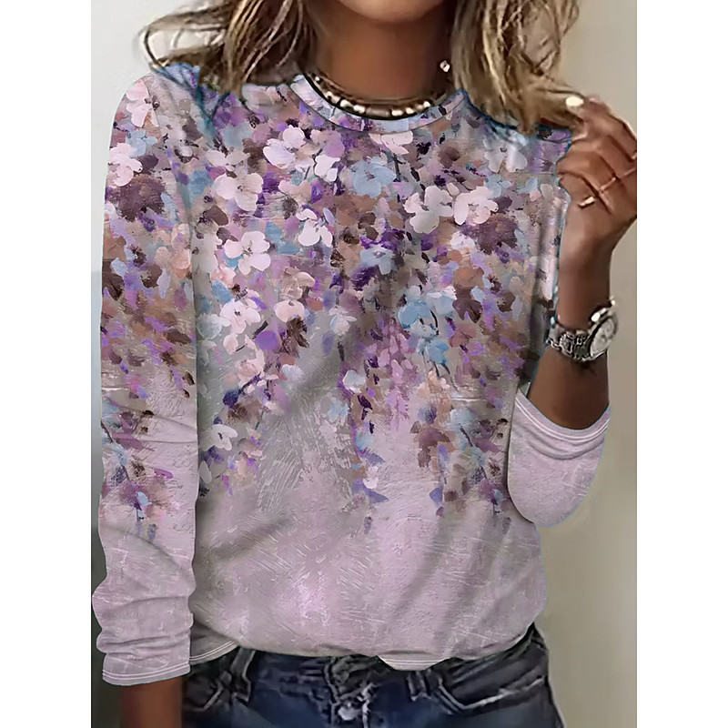 Women's T Shirt Floral Graphic Plants Fashion Casual Long Sleeve Crew Neck Round Neck Regular Tops Daily Weekend Print Blue Purple Green Summer Spring Fall